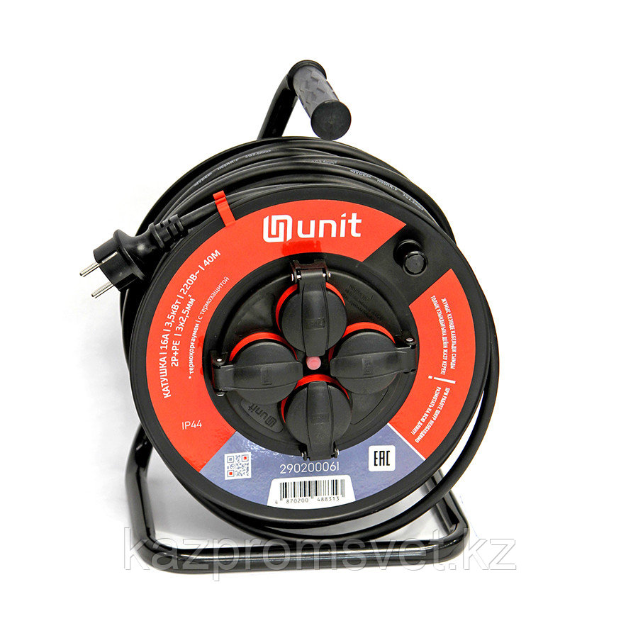 Катушка (4места 2p+pe 3х2,5мм2, 16А, 3,5кВт/220В с термозащитой IP44) 40м UNIT